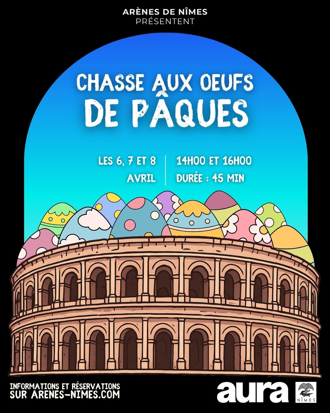 Pour réserver, sélectionnez un billet pour les Arènes aux dates du 6, 7 ou 8 avril et ajoutez l’option « Chasse aux œufs » en complément de visite afin de garantir votre participation à l’événement.
